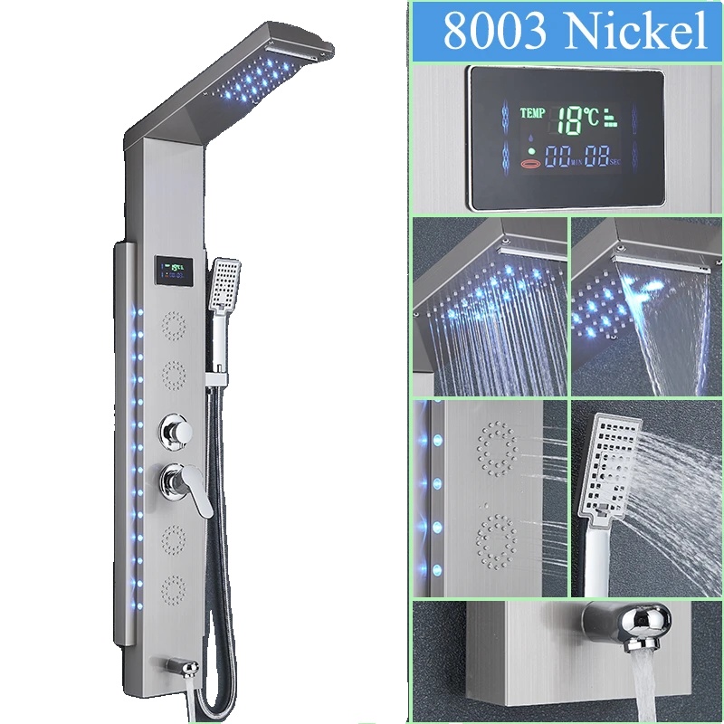 Večfunkcijski tuš panel z LED zaslonom, nerjaveče jeklo, stenski, Nickel-F-8003