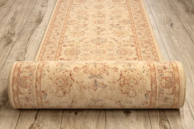 Volnena tekač DJOBIE 4517/101 Ornament, okvir bež / rdeča 85 85x390 cm