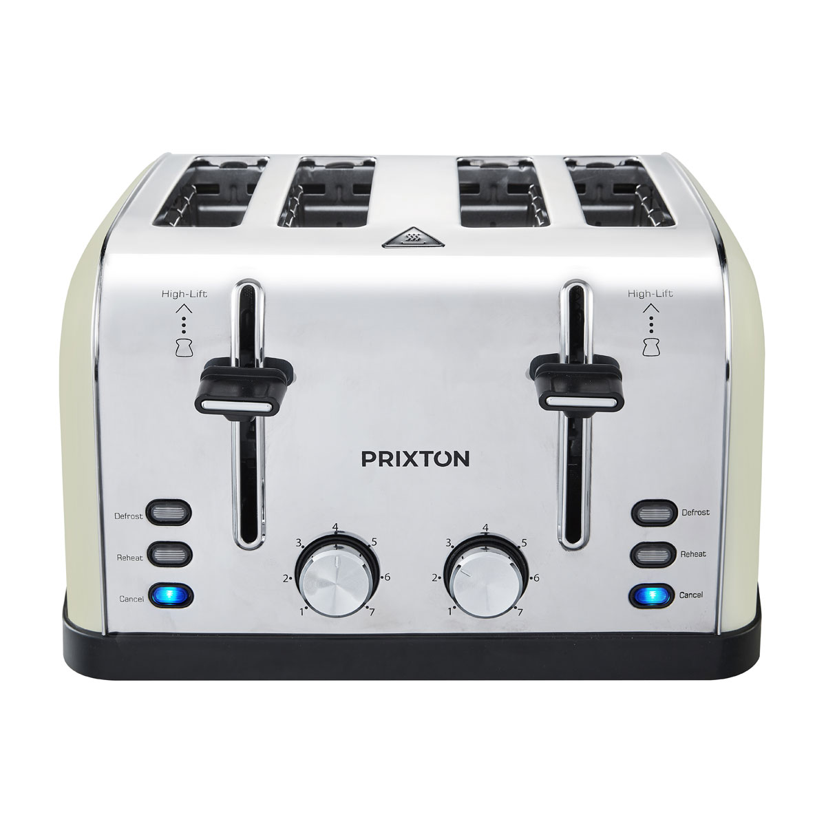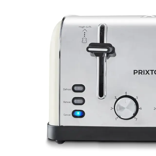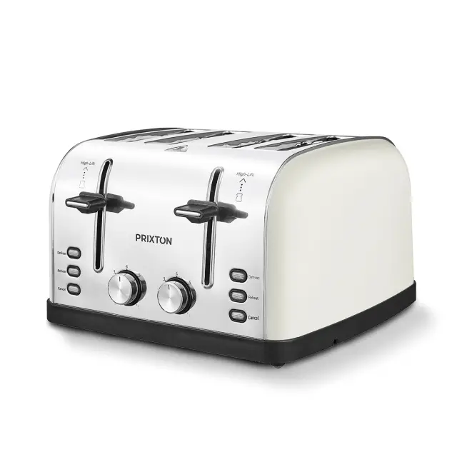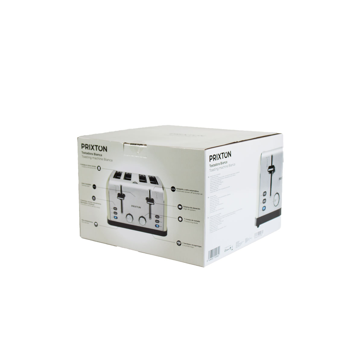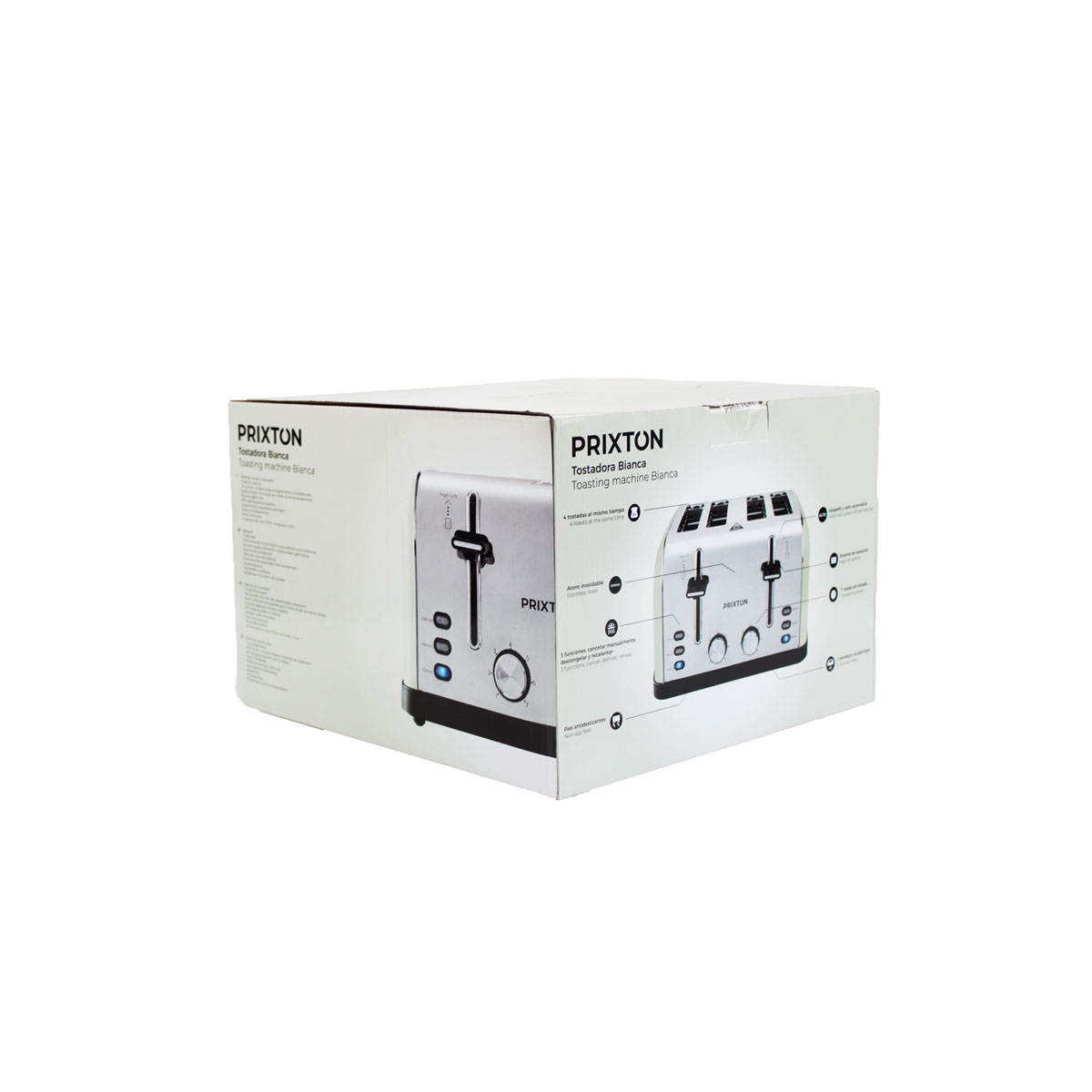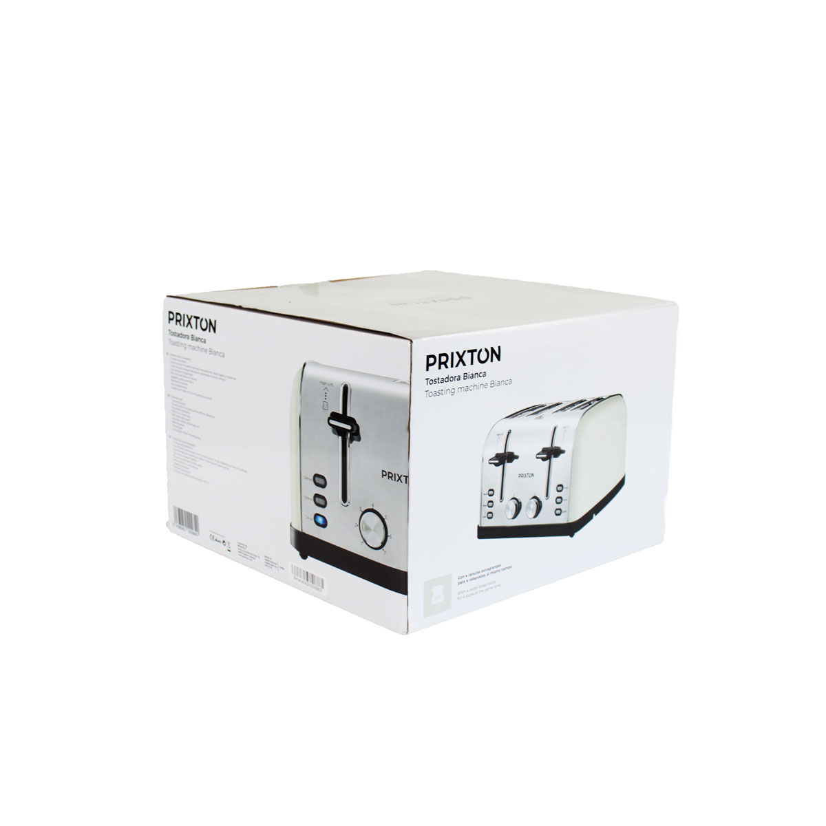 Toaster 4 Slice PRIXTON združuje visoko zmogljivost z elegantno zasnovo iz nerjavecega jekla. Zaradi svoje moci 1900 W ponuja hitro in enakomerno tostiranje, idealno za vsakodnevno uporabo in za gospodinjstva, ki išcejo ucinkovitost brez odrekanja slogu.