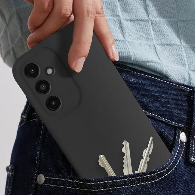 Mehka silikonska prevleka, ki absorbira udarce in je idealna za zaščito telefona Galaxy S23 FE pred praskami in manjšimi vsakodnevnimi udarci.. Ojačan blok za fotoaparat z dvignjenim robom, ki preprečuje neposreden stik, ščiti objektive in zagotavlja trajnost fotografij.. Mehka notranjost iz mikrovlaken preprečuje nastanek mikro prask na hrbtni strani, tudi po številnih vstavitvah in odstranitvah. Elegantna, diskretna zasnova, ki se popolnoma prilega vašemu Galaxy S23 FE, z natančnimi izrezi za enostaven dostop do vseh vrat in gumbov.