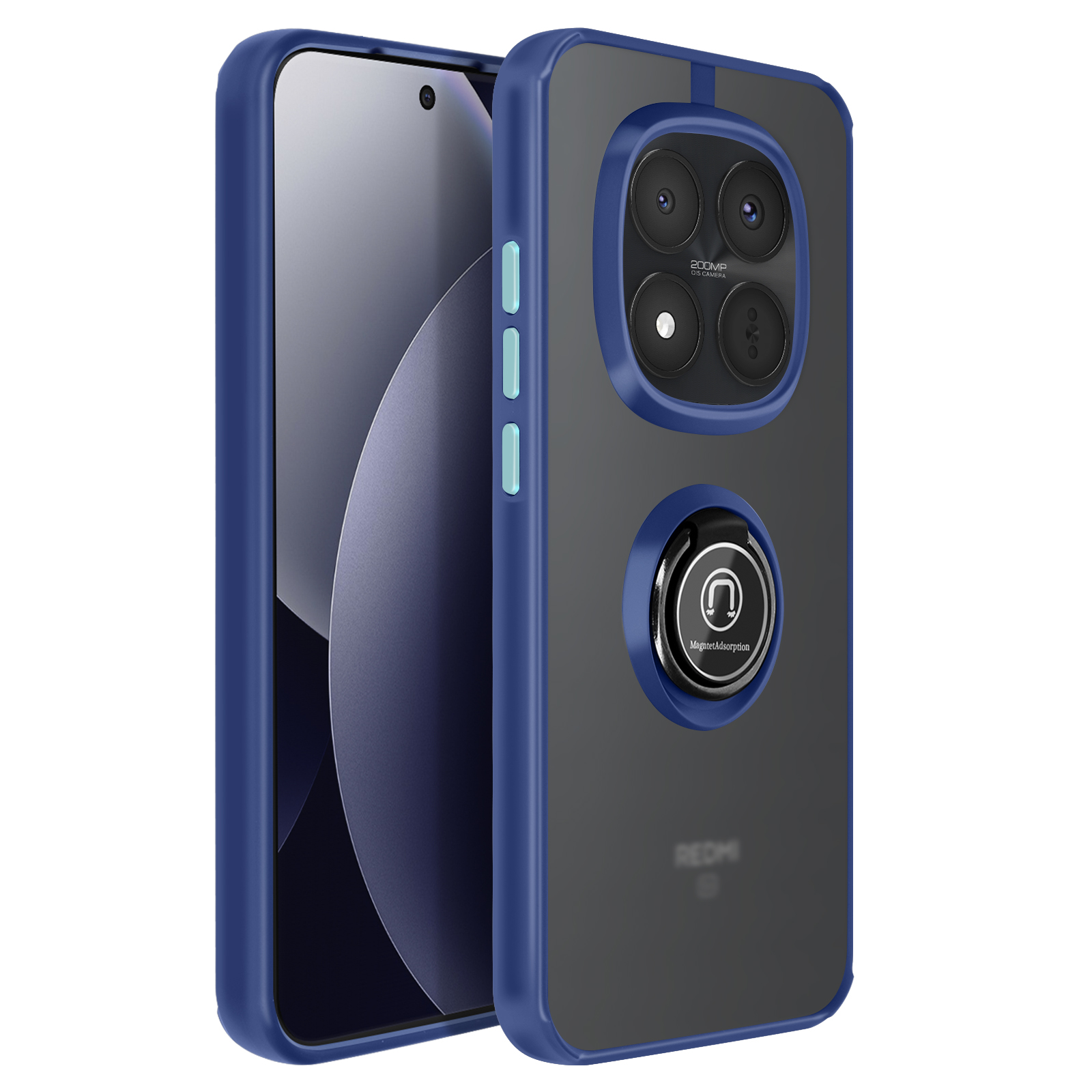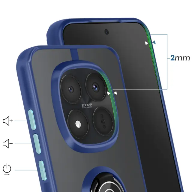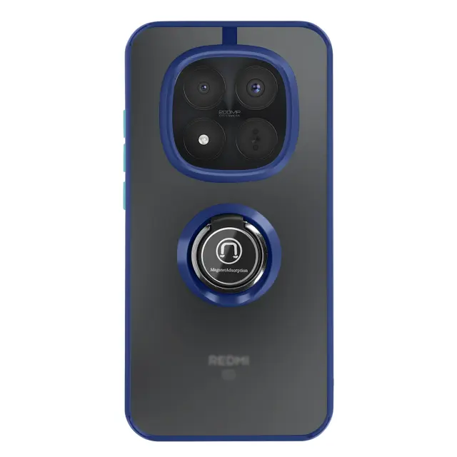 To ohišje za telefon Redmi Note 15 Pro Plus ima trdno hrbtno stran iz matiranega polikarbonata z mat površino, ki je odporna na praske in sledi.. Mehak modri TPU okvir po vsej dolžini obdaja vogale in pomaga absorbirati blage udarce v vsakdanjem življenju.. Kovinski vrtljivi obroč se vrti za 360° in napravo stabilizira v vodoravnem položaju za ogled vsebine ali opravljanje video klicev.. Zaradi feromagnetnega vložka v obroču je lupina združljiva z magnetnimi nosilci za avtomobile..