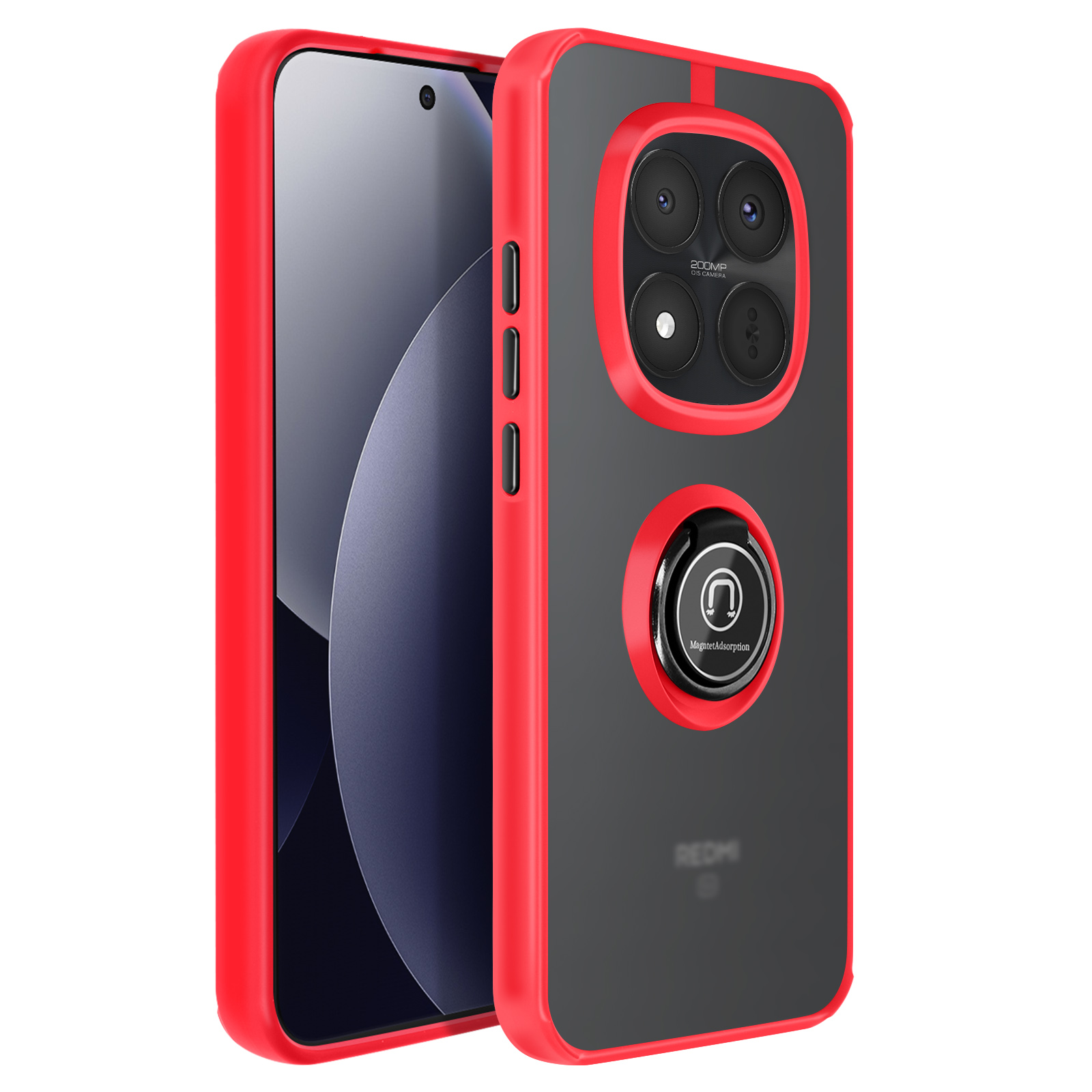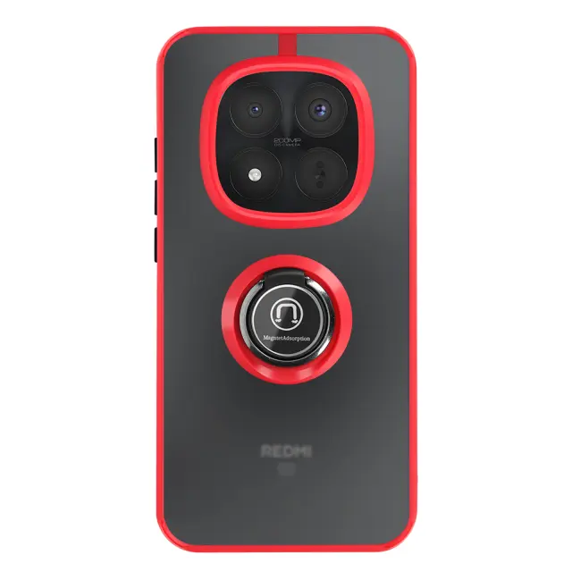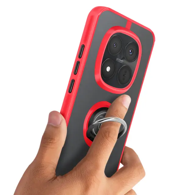 To ohišje za telefon Redmi Note 15 Pro Plus ima trdno hrbtno stran iz matiranega polikarbonata z mat površino, ki je odporna na praske in sledi.. Mehak rdeč okvir TPU obdaja vogale in pomaga absorbirati blage udarce v vsakdanjem življenju.. Kovinski vrtljivi obroč se vrti za 360° in napravo stabilizira v vodoravnem položaju za ogled vsebine ali opravljanje video klicev.. Zaradi feromagnetnega vložka v obroču je lupina združljiva z magnetnimi nosilci za avtomobile..