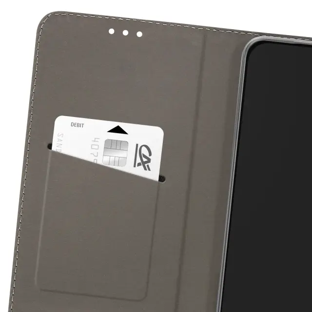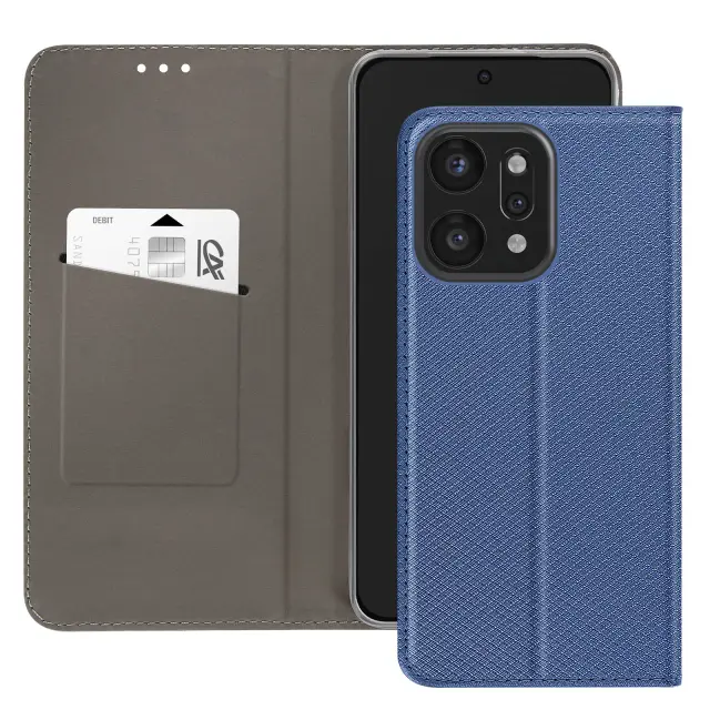 Ta denarnica za Oppo Reno14 Pro ima rebrasto površino s čvrstim otipom in temno modrim odtenkom z rahlo satenastim zaključkom.. V notranjo režo, izrezano v zavihku, lahko vstavite bančno kartico ali značko.. Gladka notranja podloga ščiti zaslon pred drgnjenjem pri zapiranju zavihka. Prozorna notranja lupina TPU ohranja stabilnost pametnega telefona in absorbira vsakodnevne udarce.