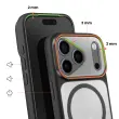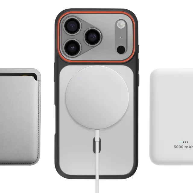 Vgrajen magnetni sistem za stabilno pritrditev polnilnikov in dodatne opreme MagSafe brez odstranjevanja ohišja. Trdna polikarbonatna hrbtna stran v kombinaciji s poltrdnim silikonskim okvirjem za učinkovito zaščito pred udarci. Za 2 mm povišan sprednji rob in dodatna debelina okoli enote kamere za zmanjšanje nevarnosti prask in udarcev. Elegantna mat obdelava zmanjšuje količino prstnih odtisov, hkrati pa ohranja diskretno, sodobno obliko.