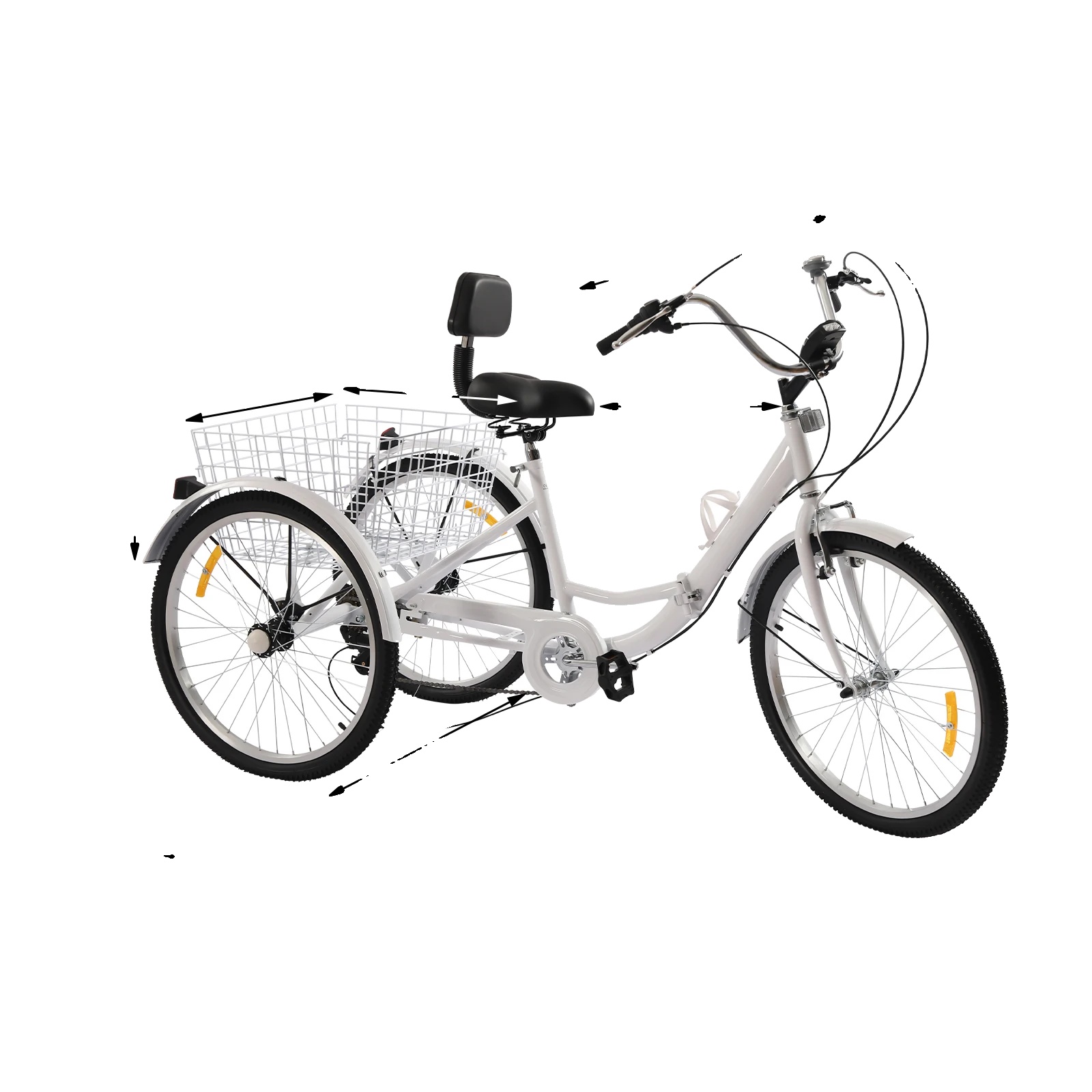 • Močna nosilnost: Zmožen podpirati do 140kg / 308lbs, je ta tricikel primeren za posameznike različnih velikosti, kar zagotavlja stabilnost in varnost med uporabo.