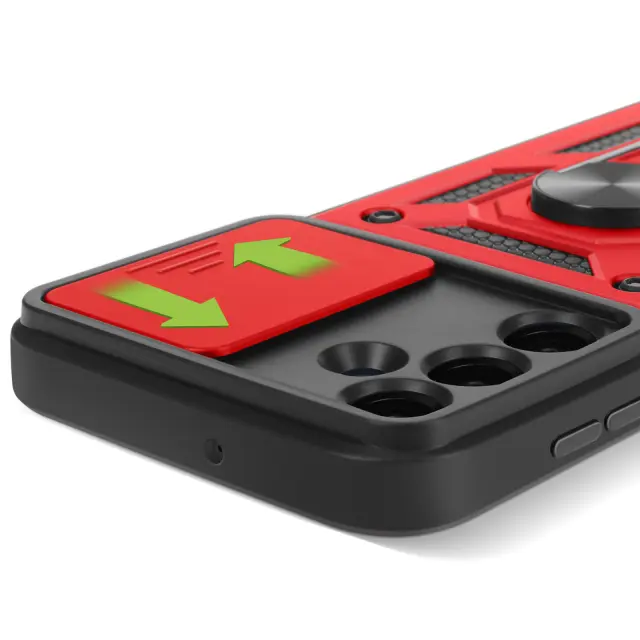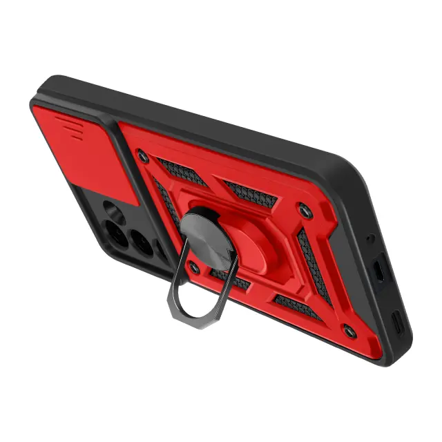 Rdeče ohišje iz dvomaterialnega materiala Mayaxess, vrhunska zaščita za vaš Samsung Galaxy A16. Izdelan je iz togega polikarbonata in prožnega silikonskega gela ter zagotavlja optimalno zaščito pred praskami in udarci.. Testirano po standardu MIL-STD-810G 516.6, kar zagotavlja varno zaščito pred padci. Drsni pokrov kamere za zaščito enote kamere pred praskami in udarci za večjo vzdržljivost.