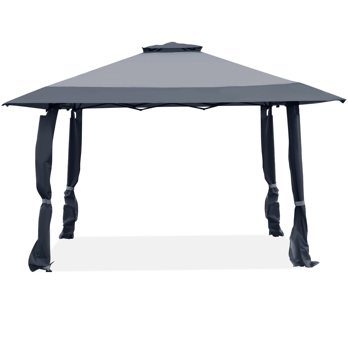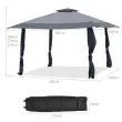 Dvojno prezračevana streha in nastavljiva višina: zasnova strehe z dvojnim prezračevanjem zagotavlja dobro kroženje zraka in boljšo stabilnost ter preprečuje dež, veter in sončno svetlobo. Naš šotor z nadstreškom velikosti 4 x 4 m ima tri nastavljive višine od 267 cm do 284 cm in je dovolj velik, da lahko sprejme 15 oseb naenkrat.