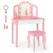 Z odstranljivim ogledalom se ta komplet otroške mizice za ličenje zlahka spremeni iz glamurozne postaje za ličenje v prostorno pisalno mizo. Vaš otrok lahko z enim samim kosom pohištva uživa tako v ustvarjalnih igrah ličenja kot v osredotočenem učenju. Vključeni so tudi 3 igriv pripomoček.