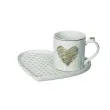 Delite trenutke sprostitve s setom skodelic za čaj na srčastem podstavku, ki je del linije Amore mio (ljubezen moja). Pozlačene srčke in geometrijske like dopolnjuje eleganca porcelana New Bone China. Set je primeren za pomivanje v pomivalnem stroju. Lahko je tudi lepo darilo. Dopolnite ga z ostalimi izdelki iz iste linije.