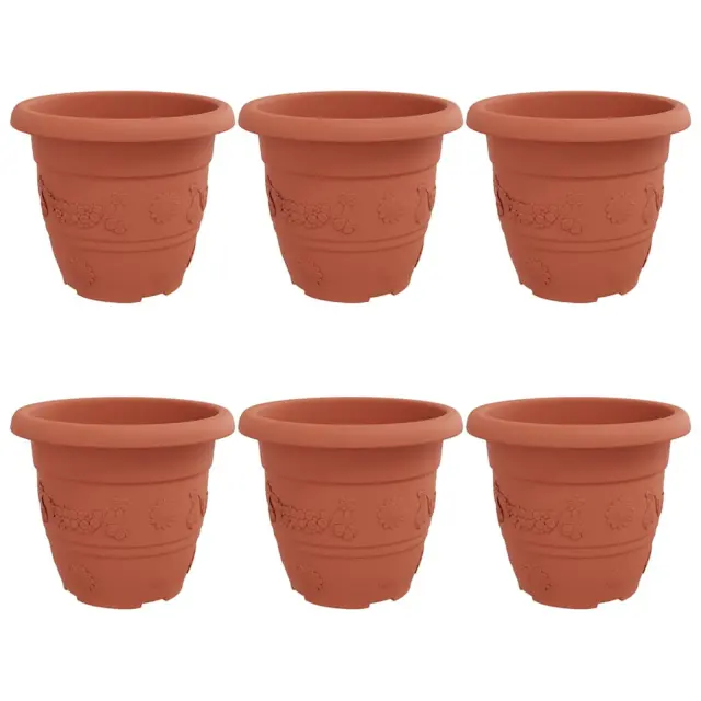 vidaXL Okrogli cvetlični lonec 6 pcs Kamnito rdeča Ø 30 x 25 cm