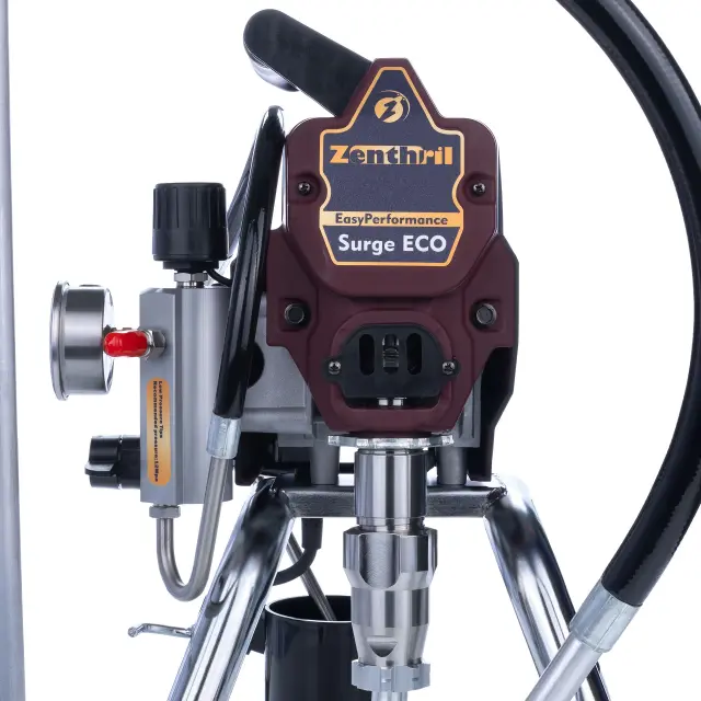 Zenthril Surge Eco je razpršilnik za barve, zasnovan za vsestranskost in učinkovitost, idealen za uporabo z večino vrst barv na vodni in topilni osnovi. Z njim lahko barvate skoraj vse gradbene podlage, kot so stene in stropi znotraj in zunaj stanovanjskih in industrijskih objektov, fasade ter različne lesene, kovinske in druge konstrukcije.