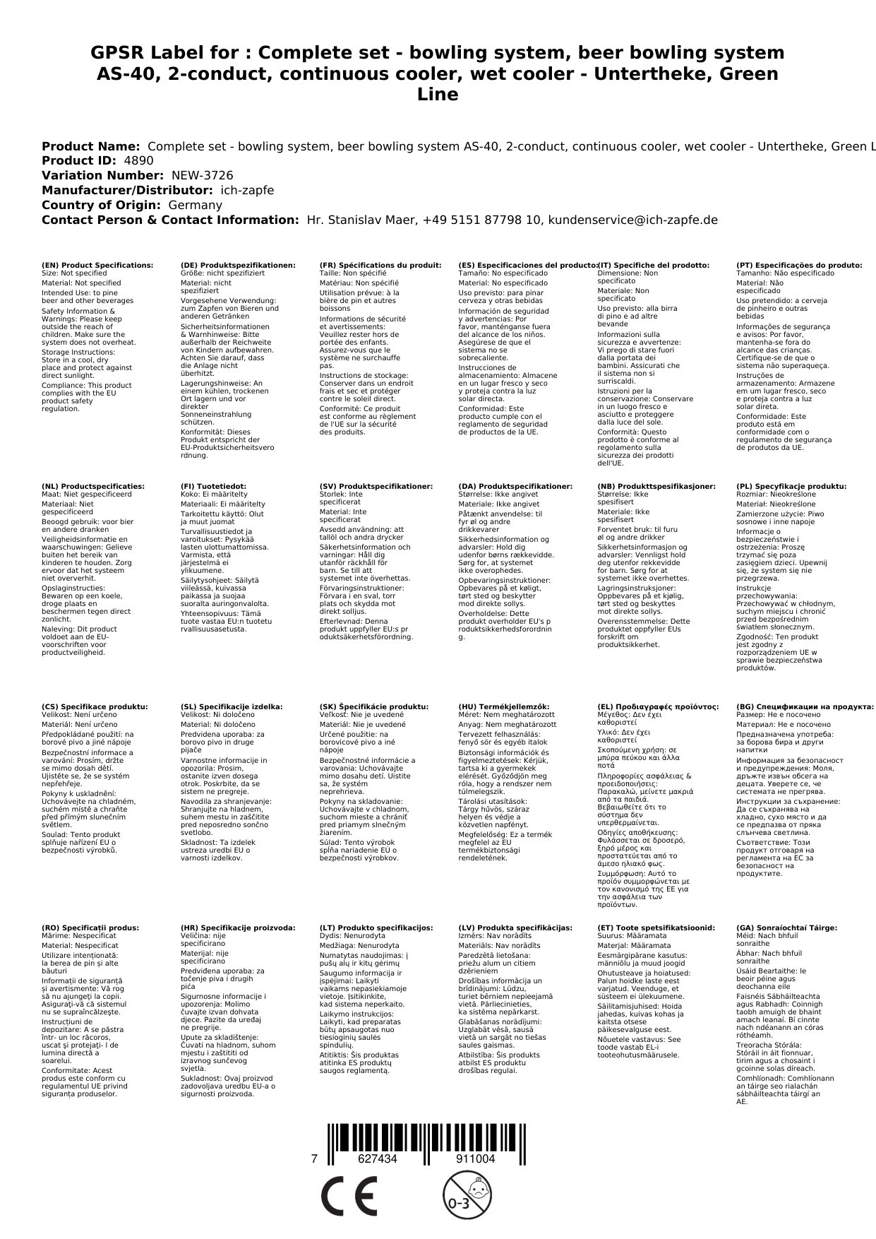 Ta kompletni set je idealna rešitev za učinkovito črpanje piva v gostinskih lokalih. Naprava AS-40 je 2-cevni sistem z mokrim hlajenjem, nameščen pod pultom, in sledi Green Line okolju prijaznim standardom. Zagotavlja visoko zmogljivost 40 litrov na uro pri 10°C temperaturni razliki, kar omogoča hitro in kakovostno strežbo.