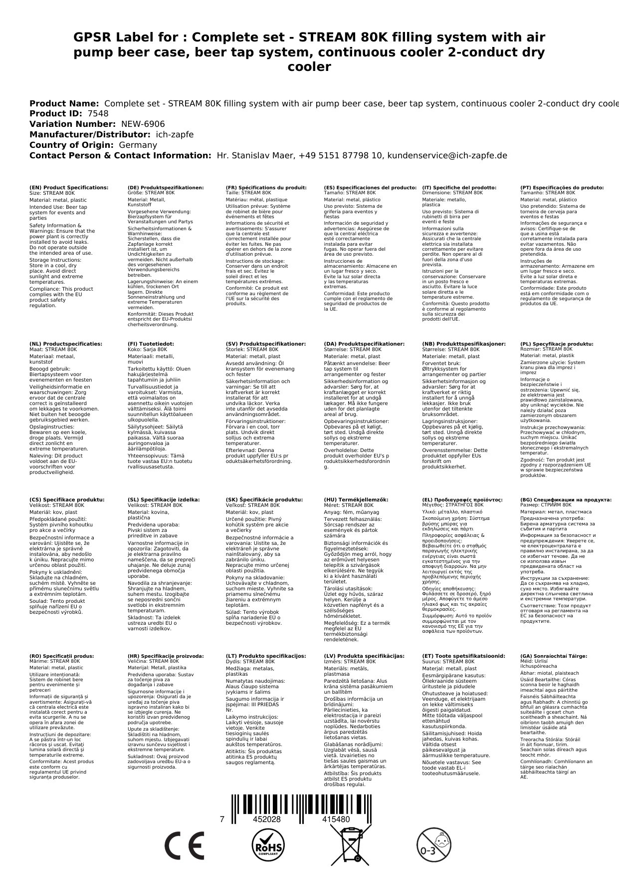 Pivo črpalka STREAM 80K, protitokovno hlajenje 2-linijsko suho hlajenje, do 90 litrov/h. 2-linijska pivo črpalka 90 litrov/h, kovček za pivo, protitokovno hlajenje, suho hlajenje. Hitra namestitev: 3 min razpakiranje, 2 min postavitev, 1 min priključitev za neskončno uživanje v hladnem, jasnem, sveže črpanem pivu. Namenjeno za profesionalno hlajenje in črpanje odlično ohlajenega piva doma, na vrtnih zabavah in za srednje velike komercialne namene.