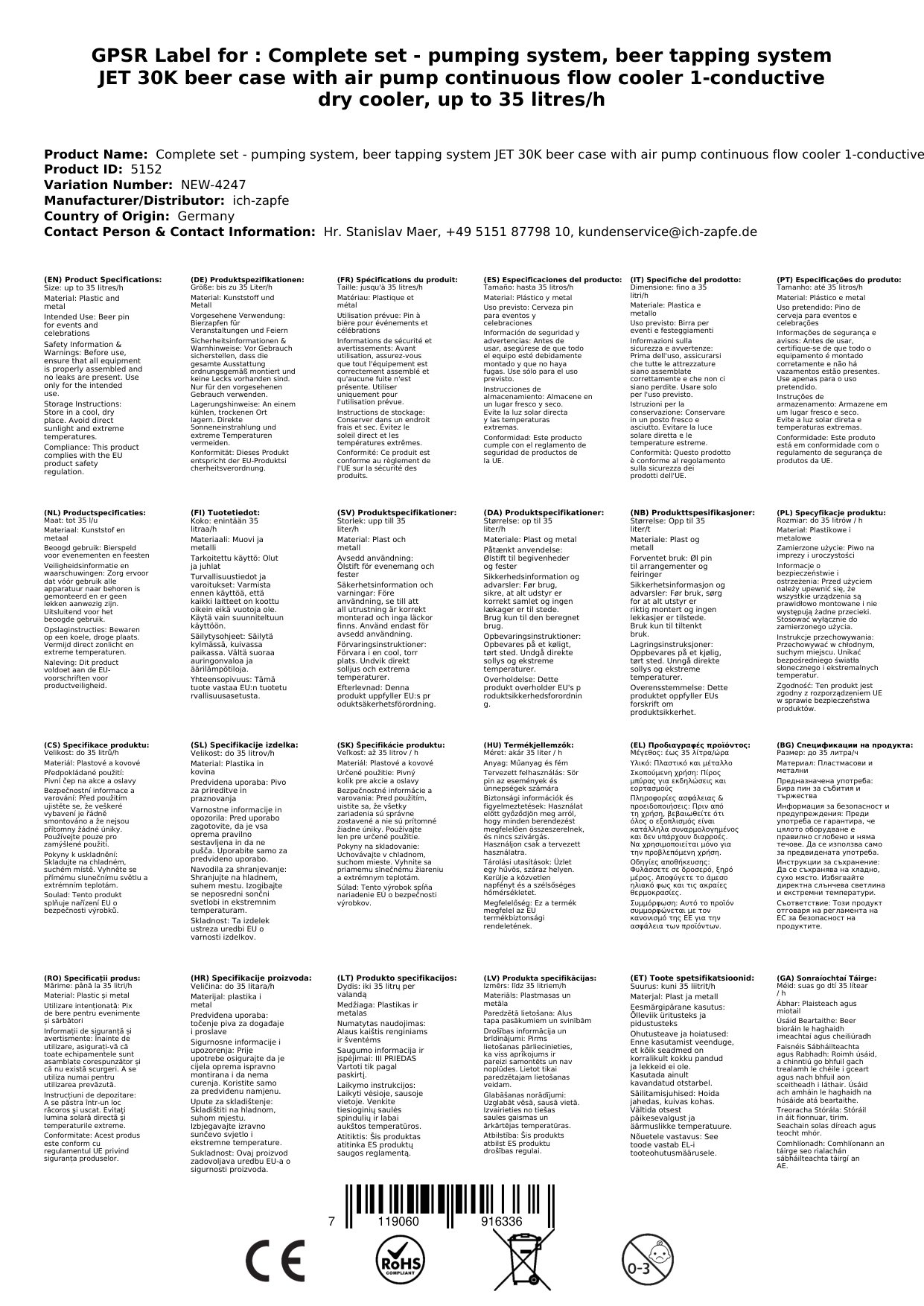 Naprava JET 30K je zasnovana za profesionalno hlajenje in črpanje piva z izjemno učinkovitostjo. Hlajenje deluje med +2 in +10 °C, z zmogljivostjo 30 l/h pri 10°C temperaturni razliki. Njena hlajenjska tehnologija je 45% bolj učinkovita od standardne električne porabe, kar pomeni manjše stroške in boljšo zmogljivost.