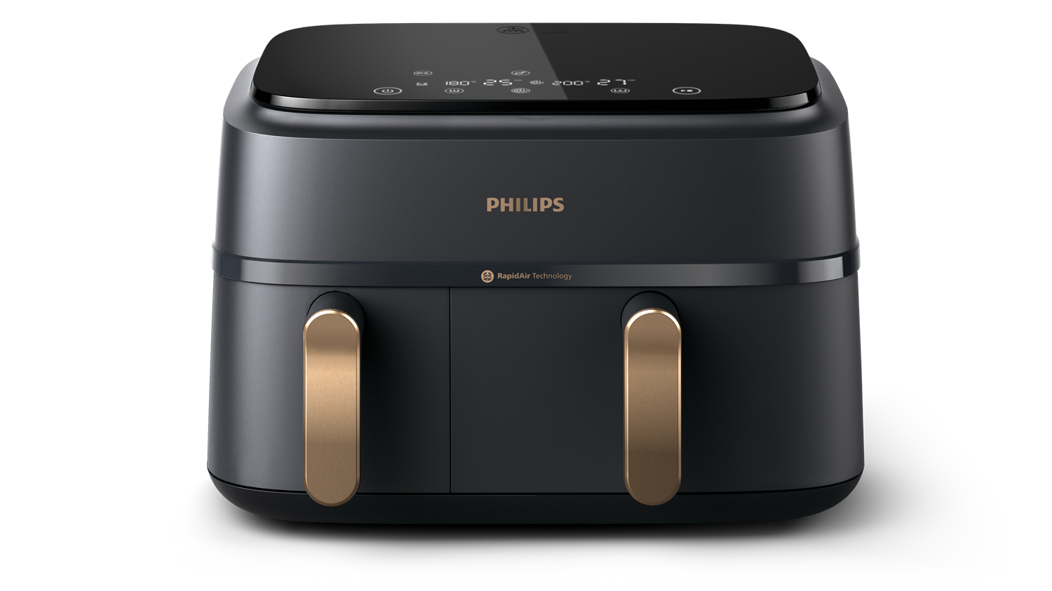 Nič več preverjanja ali ugibanja. Z zaslonom na dotik ima Airfryer z dvojno košaro prednastavljene temperature in trajanje priprave za svež ocvrti krompirček, zamrznjen ocvrti krompirček, piščanca, meso, zelenjavo, ribe, kolač in pogrevanje.