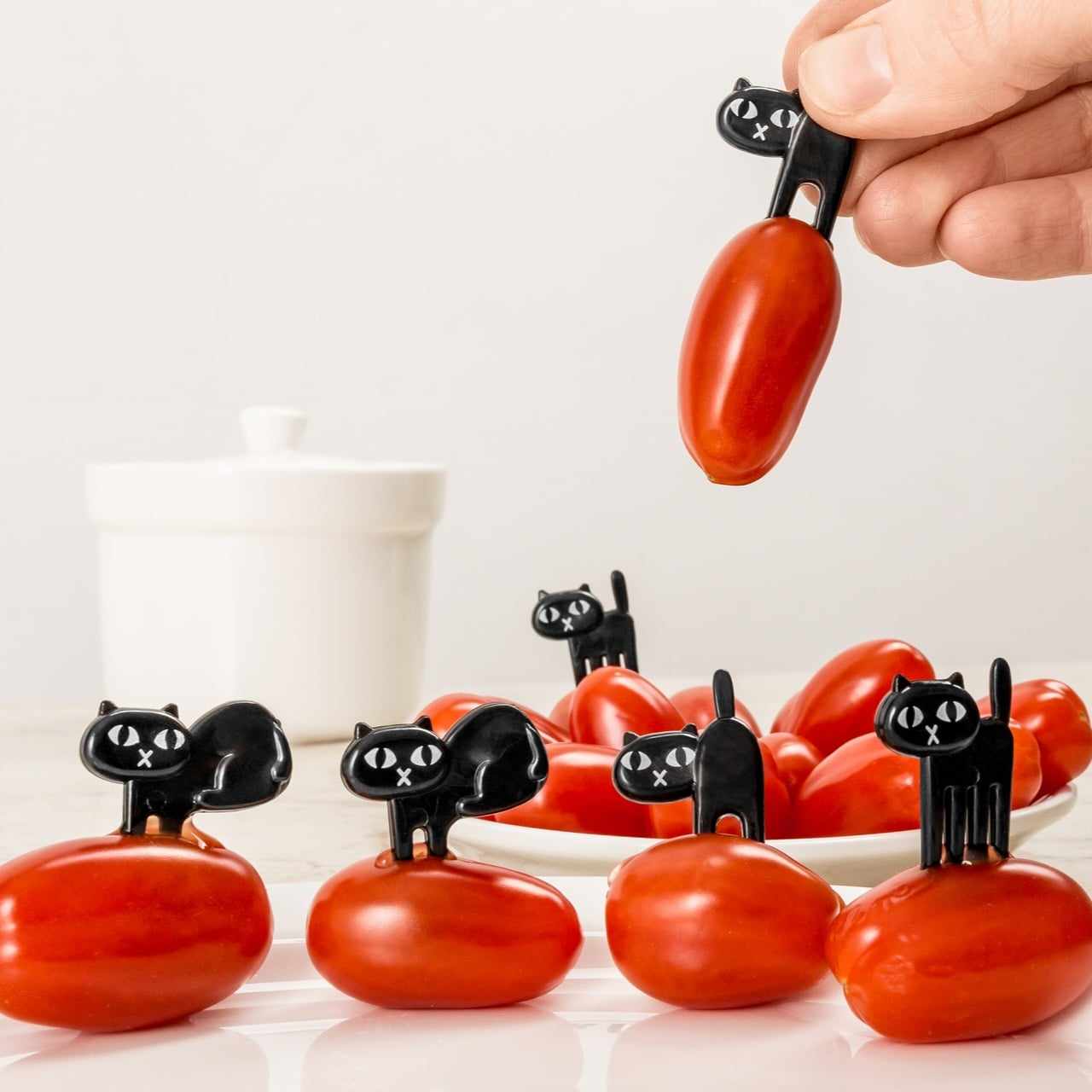 Sladka zabava BLACK CATS izbira za prigrizke, sadne ali sirove palčke za številne priložnosti in ne samo za otroške zabave. Set vsebuje 6 mačk z nabodali. Za zabave, rojstne dneve, novoletne večere itd.