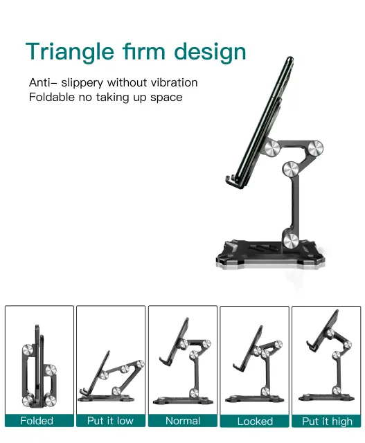 Nadgrajeno odebeljeno zložljivo in nastavljivo držalo za mobilni telefon/držalo za iPad Black