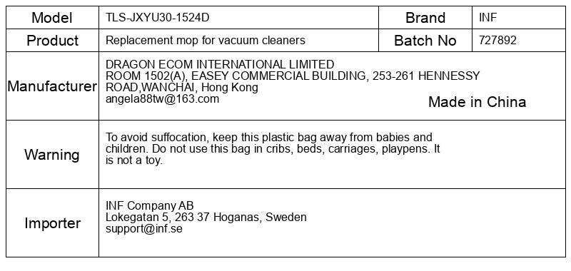 Da se izognete zadušitvi, hranite to plastično vrečko stran od dojenčkov in otrok. Te vrečke ne uporabljajte v zibelkah, posteljah, vozičkih, stajicah. To ni igrača.