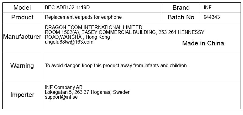 Da bi se izognili nevarnosti, izdelek hranite izven dosega dojenčkov in otrok.