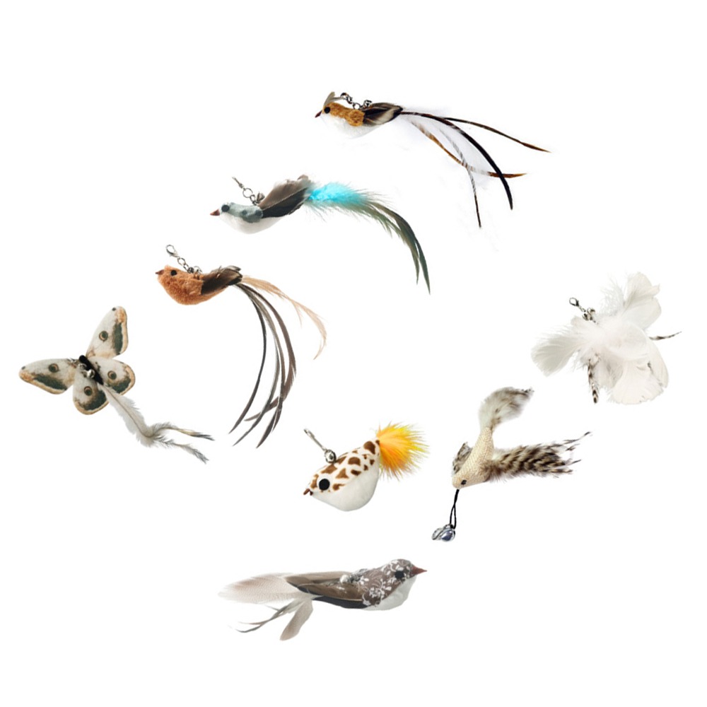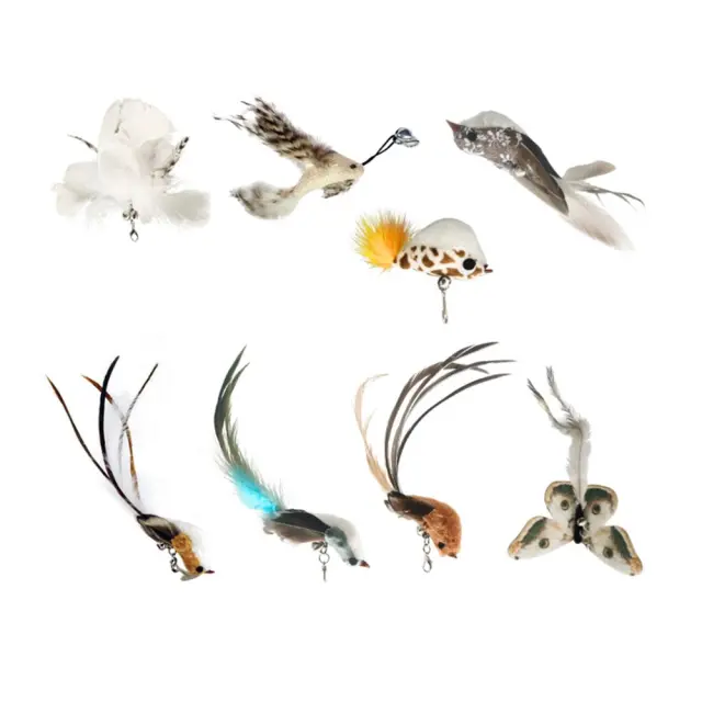 Zabavna interaktivna igra: Ti nadomestni vložki za perje so zasnovani za izboljšanje interaktivne igre med vami in vašo mačko. Naravno perje posnema gibanje plena, spodbuja mačje lovske nagone in spodbuja vadbo. Ta interaktivna igra pomaga okrepiti vez med vami in vašim mačjim spremljevalcem, kar zagotavlja fizično in duševno stimulacijo. Perje je lahko in privlačno plapola, pritegne pozornost vaše mačke in jo spodbudi k lovljenju, skakanju in udarjanju. Ta vrsta igre je bistvena za ohranjanje zdravja in sreče vaše mačke, zlasti za notranje mačke, ki morda nimajo dostopa do možnosti lova na prostem. Raznolikost stilov perja v kompletu zagotavlja, da se najde nekaj, kar bo všeč vsem mačkam.
