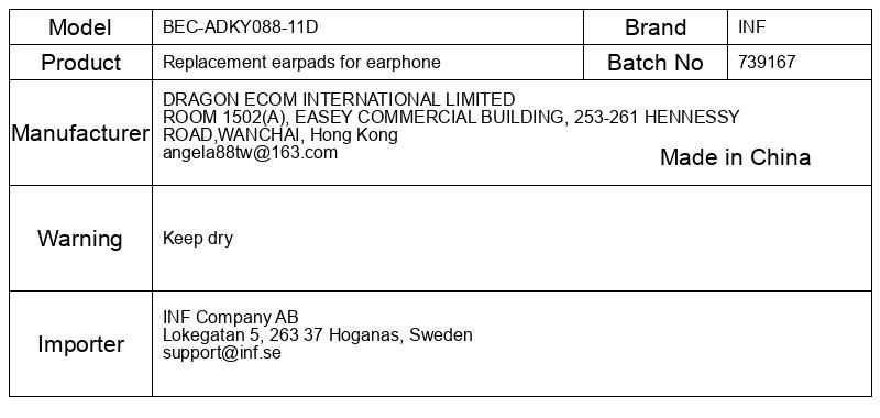 Podatki o proizvajalcu vključujejo informacije (naziv, naslov, državo in elektronski naslov) povezane s proizvajalcem izdelka.
