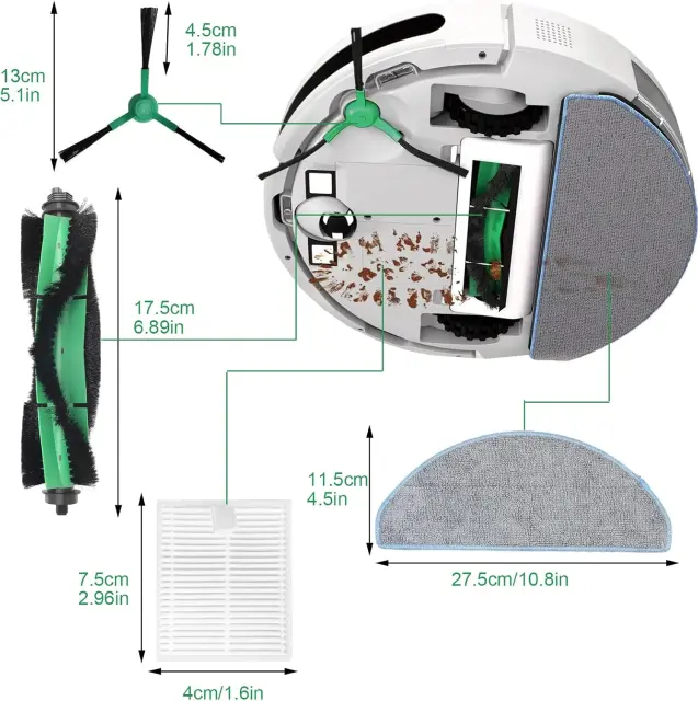 Popolna združljivost: Ta komplet je zasnovan posebej za modele iRobot Roomba Combo Essential Y0112/Y011240/Y0110/Y01040/Y014020, kar zagotavlja popolno združljivost in optimalno delovanje z vašim robotskim sesalnikom.