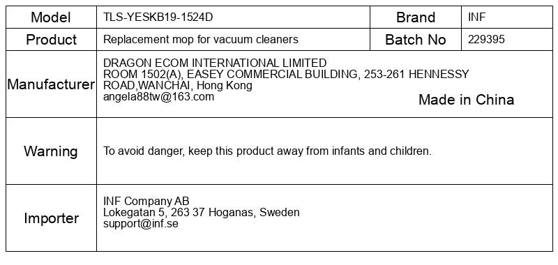 Da bi se izognili nevarnosti, hranite ta izdelek izven dosega dojenčkov in otrok.