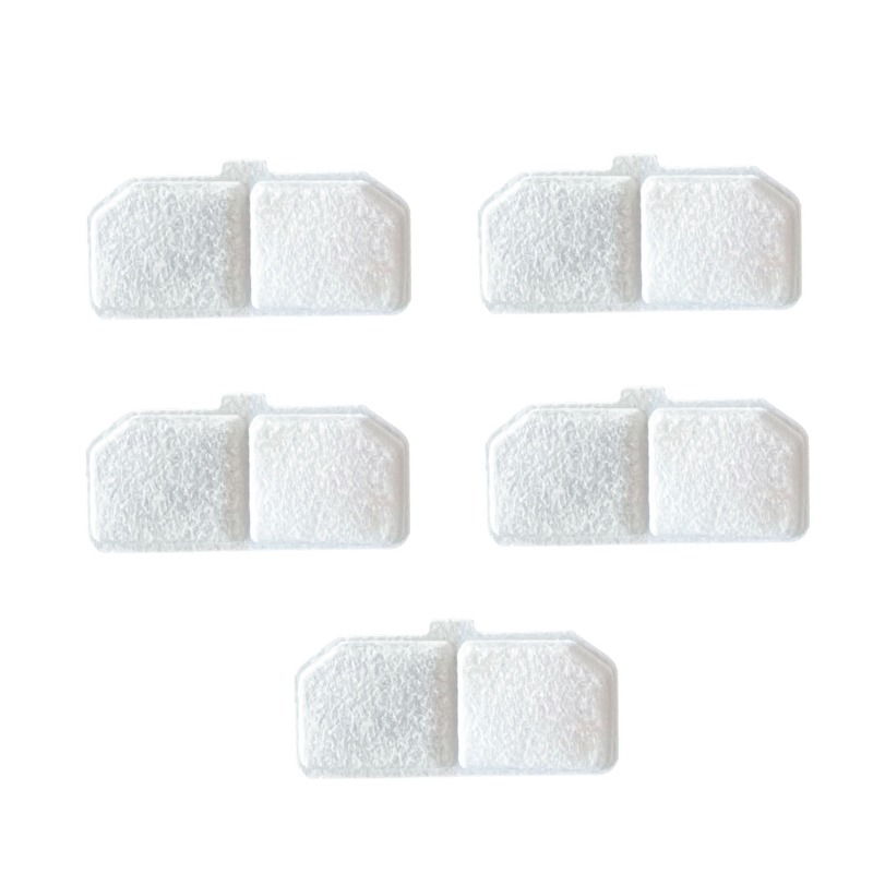 Vedno čista voda: Prosimo, upoštevajte: to niso originalni deli. Ta paket 5 filtrov za fontano za hišne živali zagotavlja, da ima vaš kosmati prijatelj vedno dostop do čiste, sveže vode. Večplastni filtrirni sistem učinkovito odstranjuje nečistoče, usedline in ostanke ter vašemu ljubljenčku zagotavlja bolj zdravo in okusnejšo vodo. Redna menjava filtra je ključnega pomena za ohranjanje higiene in funkcionalnosti fontane za vodo vašega ljubljenčka, kar spodbuja njegovo splošno dobro počutje. Ti filtri so združljivi z večino standardnih fontan za vodo za hišne živali, zaradi česar so priročen in bistven pripomoček za lastnike hišnih živali. Komponenta aktivnega oglja odstranjuje klor in vonjave, kar dodatno izboljša kakovost vode in spodbuja vašega ljubljenčka, da pije več.