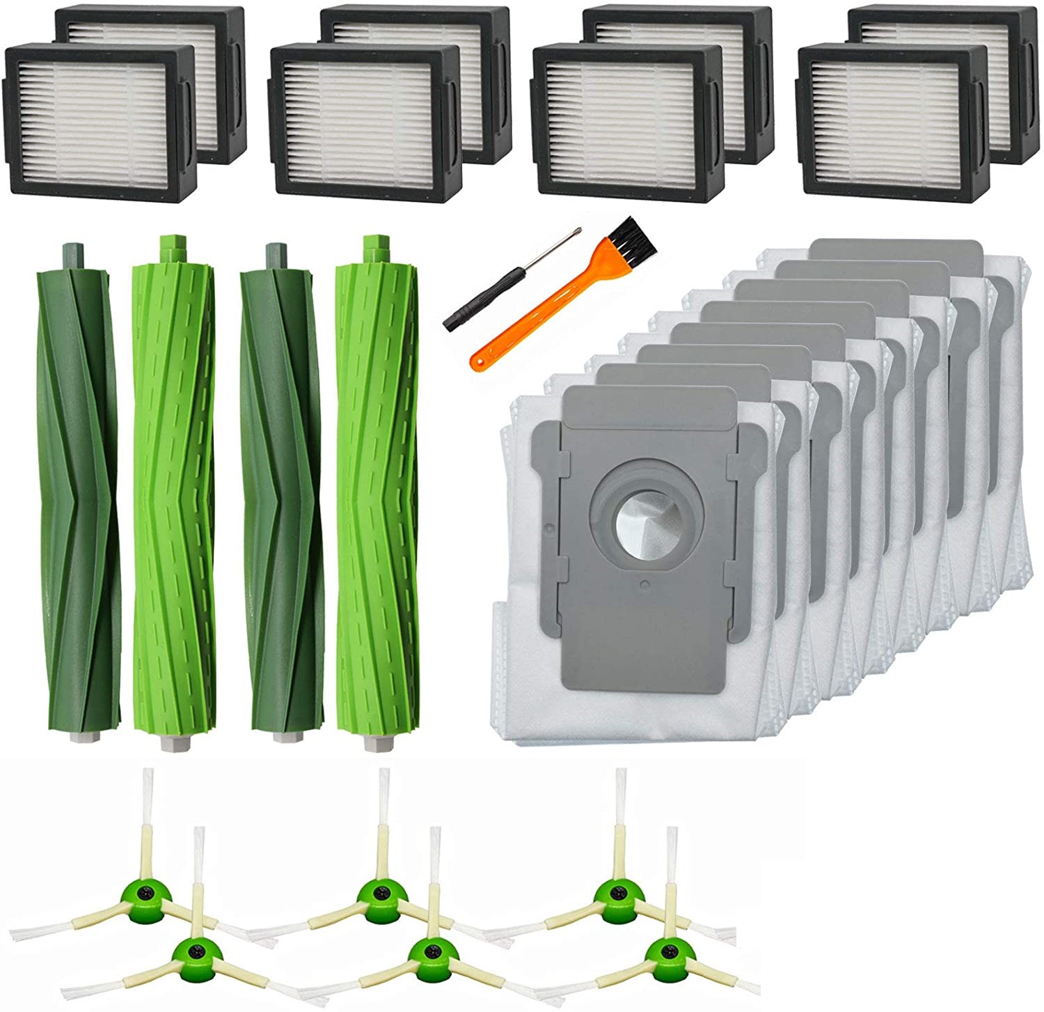 Nadomestni komplet, združljiv z iRobot i7, vsebuje ščetke, filtre, vrečke za prah in čistilno orodje, ki temeljito očisti vašo sobo, učinkovito blokira prah in delce, ohranja vašo hišo čisto in urejeno.