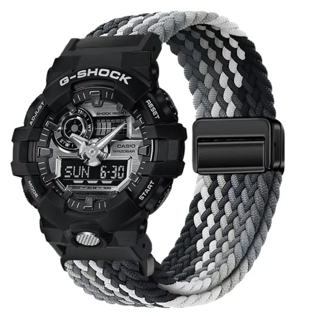 Zračna in udobna: Doživite izjemno udobje z našim pletenim najlonskim paščkom za uro. Zračna zasnova zagotavlja optimalen pretok zraka, preprečuje nabiranje znoja in draženje kože, tudi med intenzivno aktivnostjo. Izdelan iz vrhunskega najlona, ta pašček nudi mehak in udoben občutek na koži, zaradi česar je idealen za celodnevno nošenje. Združljiv je z modeli G-SHOCK Casio GA2100 in GA110, kar izboljšuje vašo izkušnjo nošenja ure. Popoln za posameznike, ki iščejo stil in udobje.