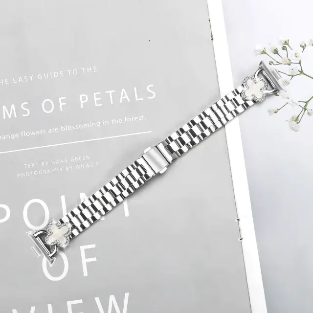 Eleganten in edinstven dizajn: Izboljšajte svojo pametno uro s tem izvrstnim jeklenim paščkom s štiriperesno deteljico. Njegova edinstvena zasnova doda pridih elegance in prefinjenosti vašemu Xiaomi Mi Band 8 Pro in seriji Redmi Watch, zaradi česar je primeren za priložnostne in formalne priložnosti. Izstopajte iz množice s tem značilnim dodatkom in izboljšajte svoj osebni slog. Štiriperesna deteljica predstavlja srečo in blaginjo, kar daje pomemben element vaši nosljivi napravi. Detelja je izdelana natančno in je varno pritrjena na kovinski trak s tremi perlami, kar zagotavlja prefinjen in moden videz.