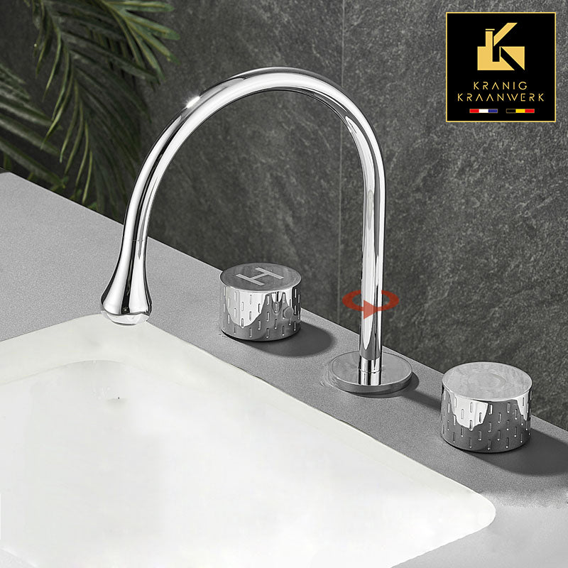 Nadometna armatura za umivalnik z velikimi gumbi za upravljanje | Ukrivljena kaplja | Montaža na pohištvo | Pipa za umivalnik
