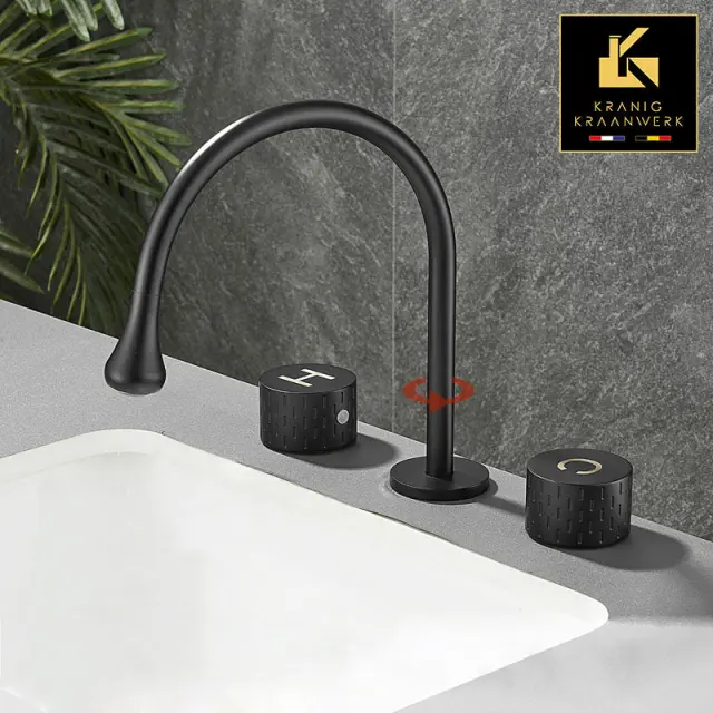 Nadometna armatura za umivalnik z velikimi gumbi za upravljanje | Ukrivljena kaplja | Montaža na pohištvo | Pipa za umivalnik