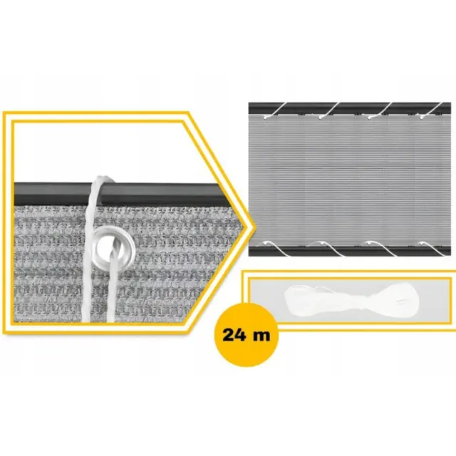 ▶️ STIL IN FUNKCIONALNOST V ENEM – POPOLNO UJEMANJE ZA VSAK PROSTOR! Univerzalna barva poskrbi, da je prevleka videti čudovito v vsakem prostoru. Preproga se brezhibno zlije z okolico in se bo odlično podala v vsak slog notranje opreme. Mrežo je mogoče namestiti na dva načina: 1️⃣ za ali pred pregradami 2️⃣ s prepletanjem prevleke skozi pregrade ▶️ ZA VSE LETNE ČASE Poleti bo zaščita ščitila pred prekomerno sončno svetlobo, jeseni pred listjem, pozimi pred snegom, spomladi pa bo preprečevala širjenje semen in cvetnega prahu. ▶️ VEČ ZASEBNOSTI, MANJ VETRA – POPOLN ZAŠČITNI ŠČIT ZA VSAK PROSTOR! ⭕️ Balkoni in terase so predvsem rekreacijski prostori, zato se splača tja namestiti zaslon, ki vas bo zaščitil pred radovednimi očmi. ⭕️ Zaščitni zaslon ne bo deloval samo na balkonu ali terasi – popoln je za vsak prostor, kjer potrebujete zasebnost ali kjer je preveč vetrovno. ⭕️ Zaščitni zaslon se lahko uporabi tudi kot zaslon za pokrivanje vrtne ute ali prozorne ograje. ▶️ MONTAŽA V NEKAJ TRENUTKIH – BREZ ORODJA ALI VRTANJA! Za namestitev zaščitnega zaslona ni potrebno specializirano orodje! ⭕️ Komplet vključuje 24-metrski kabel za pritrditev preproge. ⭕️ Aluminijasta očesca, odporna proti rji, všita na vsakih 50 cm, zagotavljajo hitro in stabilno namestitev. ⭕️ Prevleko lahko namestite tudi s kabelskimi vezicami, ki jih najdete v naših drugih ponudbah! ▶️ SPECIFIKACIJA barva: svetlo siva dimenzije: 90 × 500 cm iz visokokakovostnega PE materiala 180 g/m² vodoodporna UV zaščita ojačani robovi širine približno 4 cm premer aluminijastih pritrdilnih očescev: 2,2 cm premer luknje v pritrdilnem očescu: 1,1 cm aluminijasta pritrdilna očesca približno na vsakih 50 cm ▶️ VSEBINA KOMPLETA balkonska prevleka za balkon