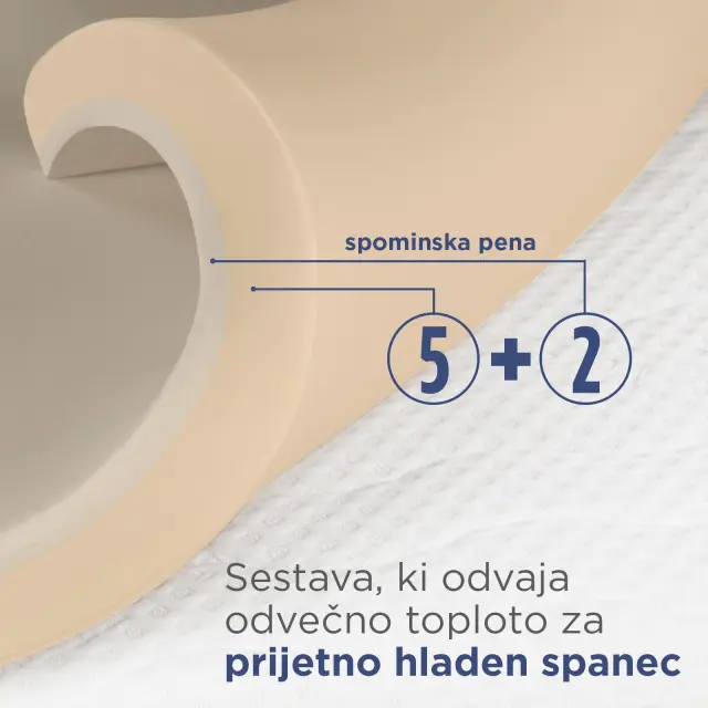 Izboljšaj svoj spanec samo z enim preprostim dodatkom. Nadvložek Memosilver 5+2 Memory vsako podlago spremeni v udobno ležišče: sedežno garnituro, dotrajano ležišče, uporabiš pa ga lahko tudi na dopustu, kampiranju ali kot pomožno ležišče.  Nadvložek nudi boljšo ergonomsko podporo hrbtenici in sprošča vse točke telesa v vsaki noči. Dodatni srebrovi ioni pomagajo preprečevati razrast mikrobov, zato bo tudi tvoje spalno okolje bistveno bolj čisto.