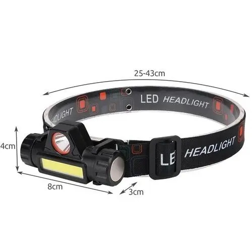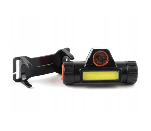 Čelna svetilka z dvema LED (XPE + COB trak) z USB polnjenjem, magnetom, nastavljivim naklonom in paščkom.