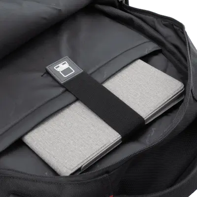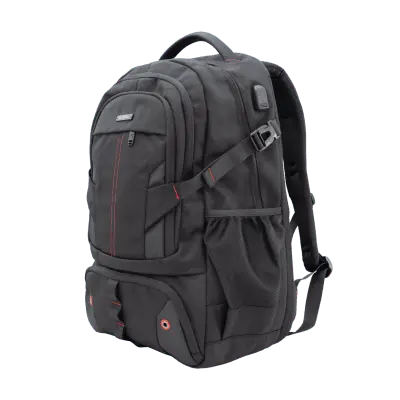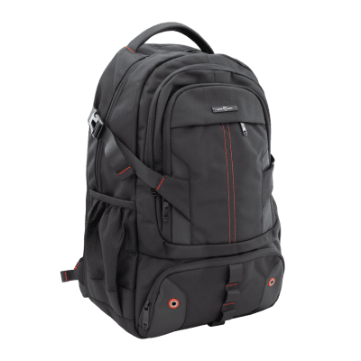 Za prenosnike do: 20.0'' Barva: Črna z rdečimi detajli Število predelkov: 1 x glavni predal, 1x predal na zadnji strani nahrbtnika, 3 x dodatni predelki na sprednji strani + stranski mrežasti žepi Material: HQ najlon + 210D poliester Vodoodporen material: D Mere (mm): 370x510x170 Ostalo: Podložen zadnji del torbe, oblazinjene naramnice za boljši pretok zraka, zaščitni prsni pas