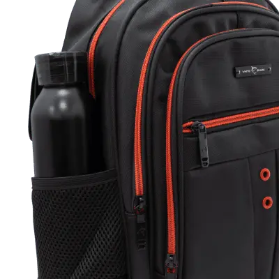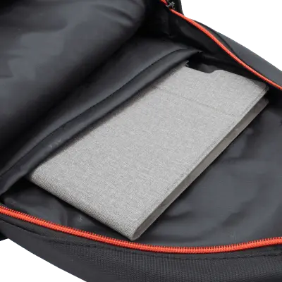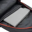 Za prenosnike do: 16,0'' Barva: Črna z rdečimi detajli Število predelkov: 1 x glavni predal, 3 x dodatni predelki na sprednji strani + stranski mrežasti žepi Material: HQ najlon + 210D poliester Vodoodporen material: D Mere (mm): 320x410x120 Drugo: Podložen zadnji del torbe, oblazinjeni trakovi za boljši pretok zraka