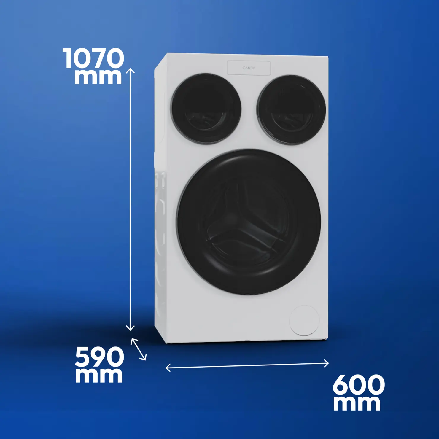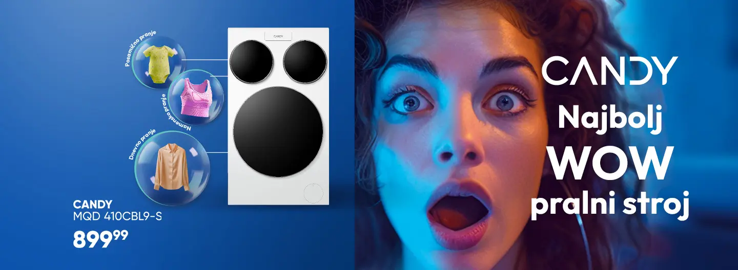 Candy MQD 410CBL9-S je napreden pralni stroj za sodobna gospodinjstva, ki združuje veliko kapaciteto in energijski razred A za učinkovito ter varčno pranje. Posebnost modela je inovativna zasnova s tremi bobni, ki omogoča še več prilagodljivosti pri pranju različnih vrst perila, obenem pa poskrbi za prihranek časa in več udobja v vsakdanjem ritmu. Opremljen je z Direct Motion motorjem, možnostjo zamika vklopa do 24 ur ter tehnologijo AirPro Wash za učinkovito odstranjevanje madežev in visoko raven higiene. Poleg zmogljivosti navduši tudi z nizko glasnostjo pri ožemanju ter prostostoječo zasnovo, ki se lepo poda v vsak dom.