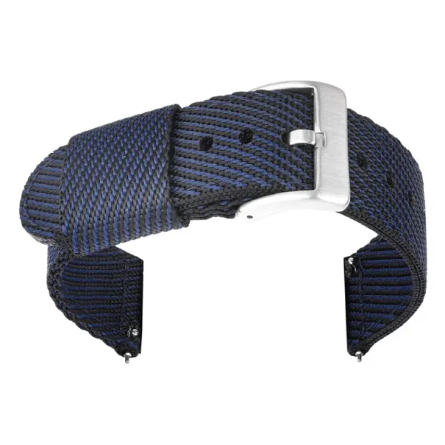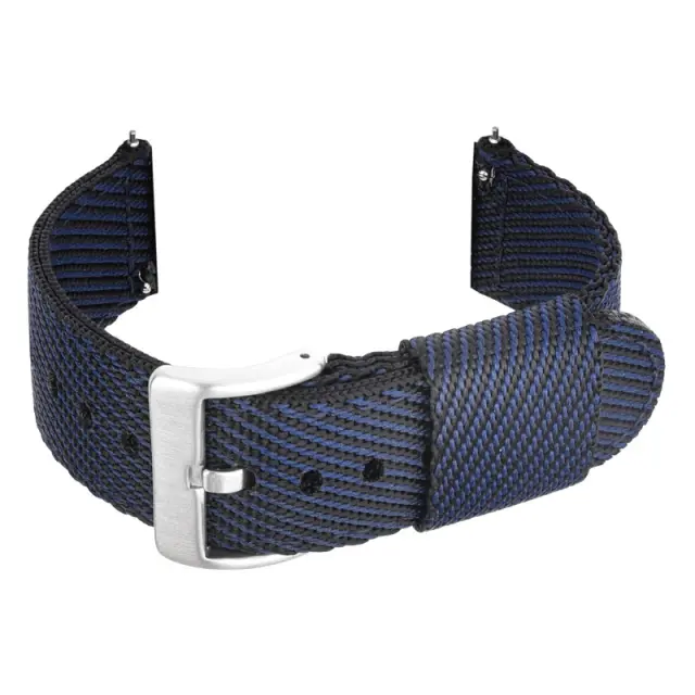 Eleganten dizajn: Izboljšajte svojo uro s tem prefinjenim modro-črnim črtastim najlonskim paščkom. Edinstven dizajn doda pridih modernega sloga vsaki uri, zaradi česar je popoln za priložnostne in formalne priložnosti. Kontrastne barve ustvarjajo vizualno privlačen videz, ki bo zagotovo pritegnil pozornost. Uživajte v mešanici udobja in mode s tem natančno izdelanim paščkom za uro.