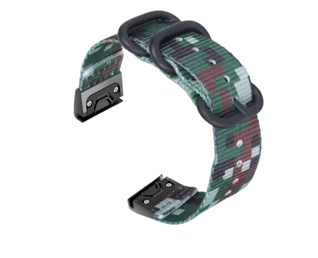 Eleganten maskirni vzorec: Vzorec maskirne džungle doda vaši uri Garmin pridih robustnega sloga, zaradi česar je idealen dodatek za ljubitelje aktivnosti na prostem in pustolovce. Izdelan dizajn se odlično poda k široki paleti oblačil in priložnostim.