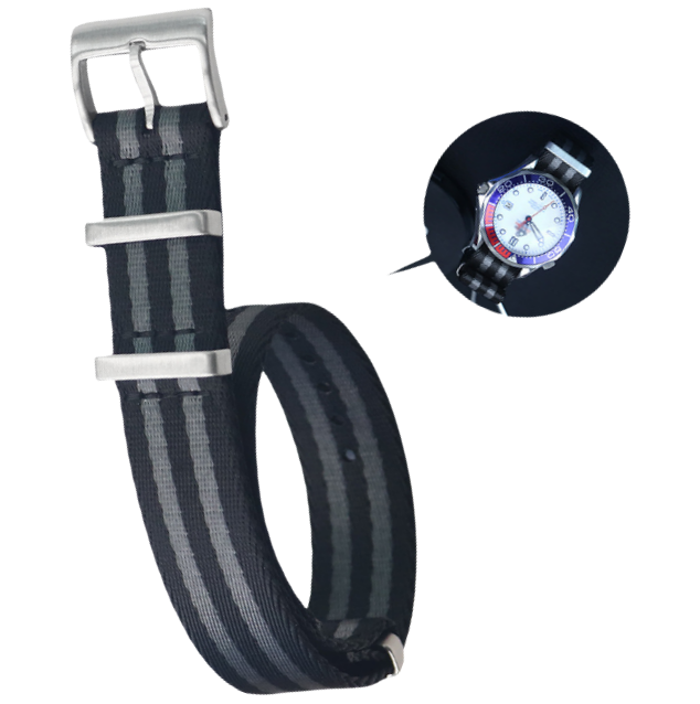 Najlonski pašček za uro Omega Seamaster, Speedmaster, Planet Ocean Black+Grey 18 mm
