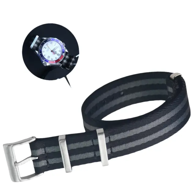 Trpežno in varno: Ta pašček za uro, izdelan z vzdržljivo zaponko iz nerjavečega jekla 304, zagotavlja varno in zanesljivo zapiranje. Visokokakovostno najlonsko tkanje je odporno proti obrabi in trganju, kar zagotavlja dolgo življenjsko dobo.