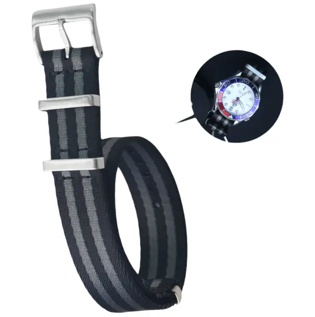 Zračno in udobno: Ta pašček za uro, izdelan iz vrhunskega najlona, ponuja izjemno zračnost in zagotavlja udobje čez dan, tudi v toplem vremenu. Mehak in prožen material se nežno prilega vašemu zapestju in zagotavlja udobno prileganje.