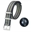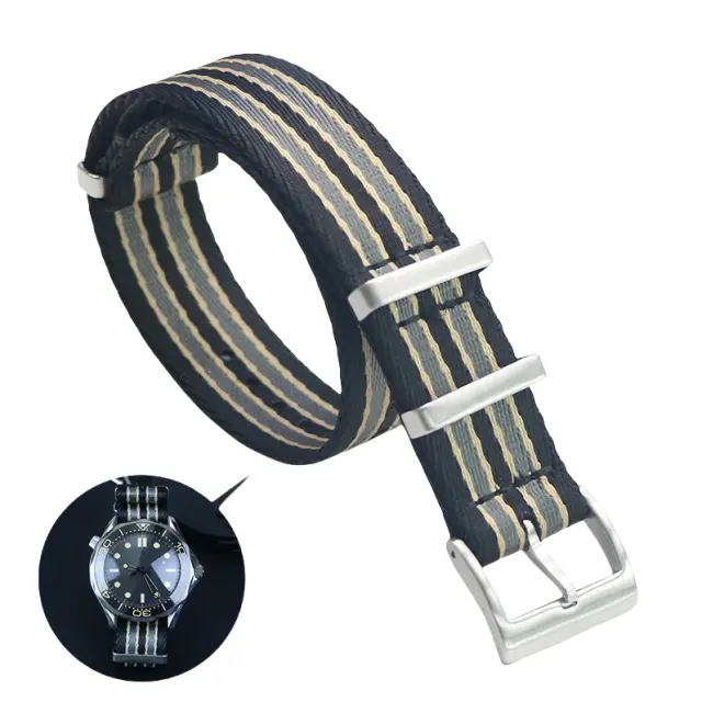Trpežno in varno: Ta pašček za uro, izdelan z vzdržljivo zaponko iz nerjavečega jekla 304, zagotavlja varno in zanesljivo zapiranje. Visokokakovostno najlonsko tkanje je odporno proti obrabi in trganju, kar zagotavlja dolgo življenjsko dobo.