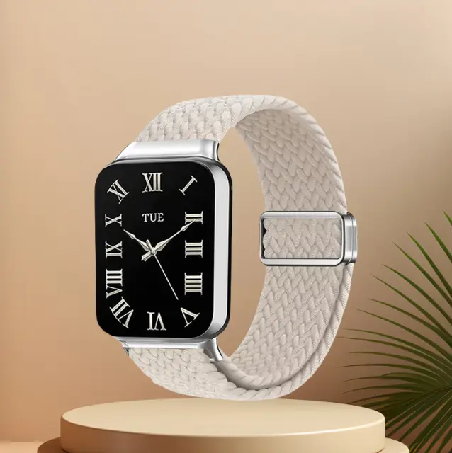 Mehak in koži prijazen: ta trak je izdelan iz vrhunskega najlonskega materiala in ponuja izjemno udobje za celodnevno uporabo. Njegova mehka in zračna tekstura zagotavlja nežen dotik vaše kože, zaradi česar je idealen tudi za najbolj občutljiva zapestja.