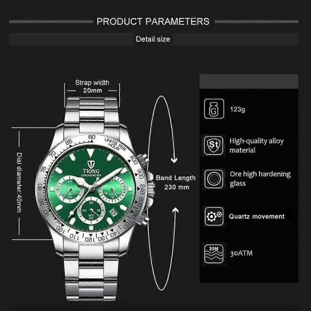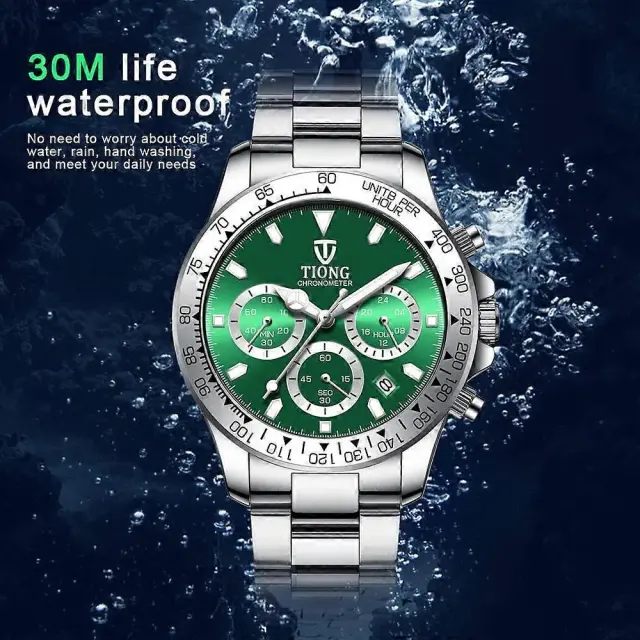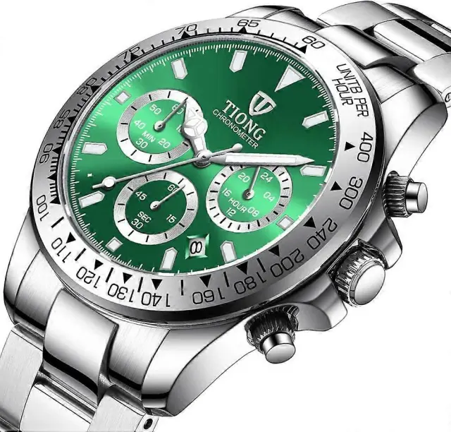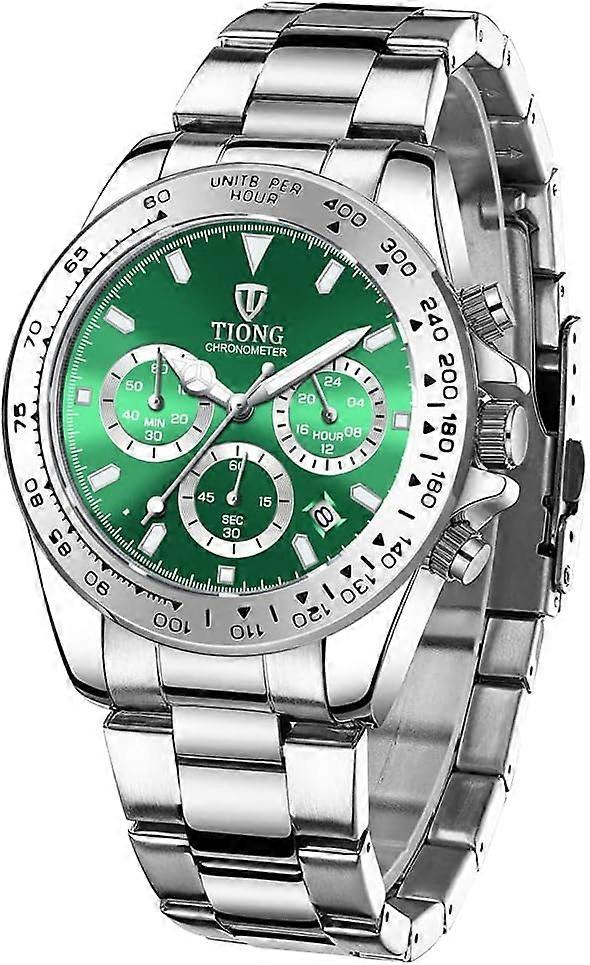 Najnovejši model moške kvarčne ure 2025, modne nepremočljive poslovne ure s kronografom iz nerjavečega jekla za moške, srebrne in zelene