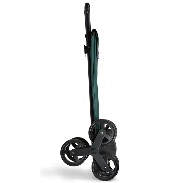 Gimi nakupovalni voziček se ponaša z zeleno nakupovalno torbo s prostornino 52 litrov, ki je izdelana iz 100% sintetične poliestrske tkanine in ima notranjo vodoodporno poliuretansko prevleko, ki preprečuje vdor vlage v notranjost. Material ne vpija vlage in je odporen na UV sevanje. Močna jeklena konstrukcija omogoča prevoz do 30 kg izdelkov. Voziček je opremljen s šestkolesnim sistemom s tremi kolesi na vsakem bloku, ki omogočajo hitro premagovanje stopnic, robnikov in drugih ovir pri premikanju navzgor ali navzdol. Okvir kolesa je izdelan iz polipropilena (PP): močnega materiala, odpornega na deformacije, obrabo in korozijsko pokanje. Zunanja stran kolesa pa je izdelana iz pene: edinstven, lahek in elastičen material, ki ima odlične lastnosti blaženja udarcev, je odporen na spremembe zunanjih temperatur in zmanjšuje hrup med premikanjem na minimum. V notranjosti se nahaja žep, ki je namenjen shranjevanju ključev, denarnice ali pametnega telefona. Zložljiva opora zagotavlja stabilnost vozička v navpičnem položaju in ima praktično kljuko za obešanje na nakupovalni voziček. Teža vozička: 3,3 kg | Dimenzije: 51 cm x 41 cm x 102 cm | Dimenzije torbe: 34 cm x 23 cm x 68 cm