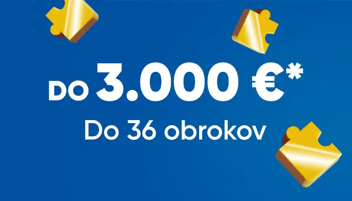 Hitro in enostavno do obročnega nakupa v naših poslovalnicah! Za nakupe med 100 in 3.000 evrov si lahko hitro zagotovite kredit – brez izpiskov in nepotrebne dokumentacije.
