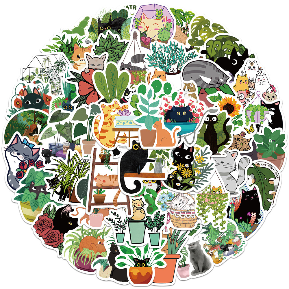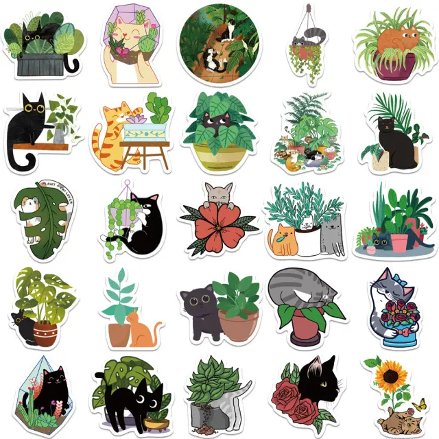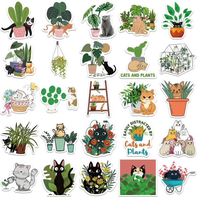 Set 50 ljubkih nalepk z risanimi mačkami in rastlinami ter veliko različnih motivov. Te nalepke so izdelane iz trpežnega materiala in jih je mogoče pritrditi na katero koli gladko, čisto površino.